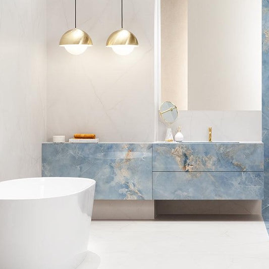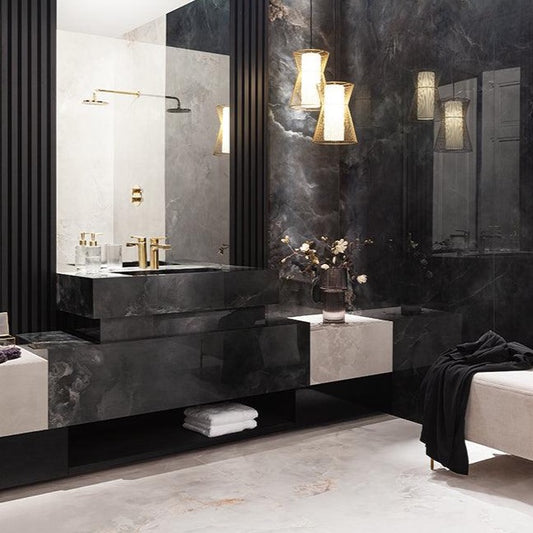 Onze tegels zijn 100% waterbestendig. Je kunt ze gebruiken in badkamers, spa's en andere kamers met een verhoogde luchtvochtigheid. Maar ook als vloertegel of buitengevel!